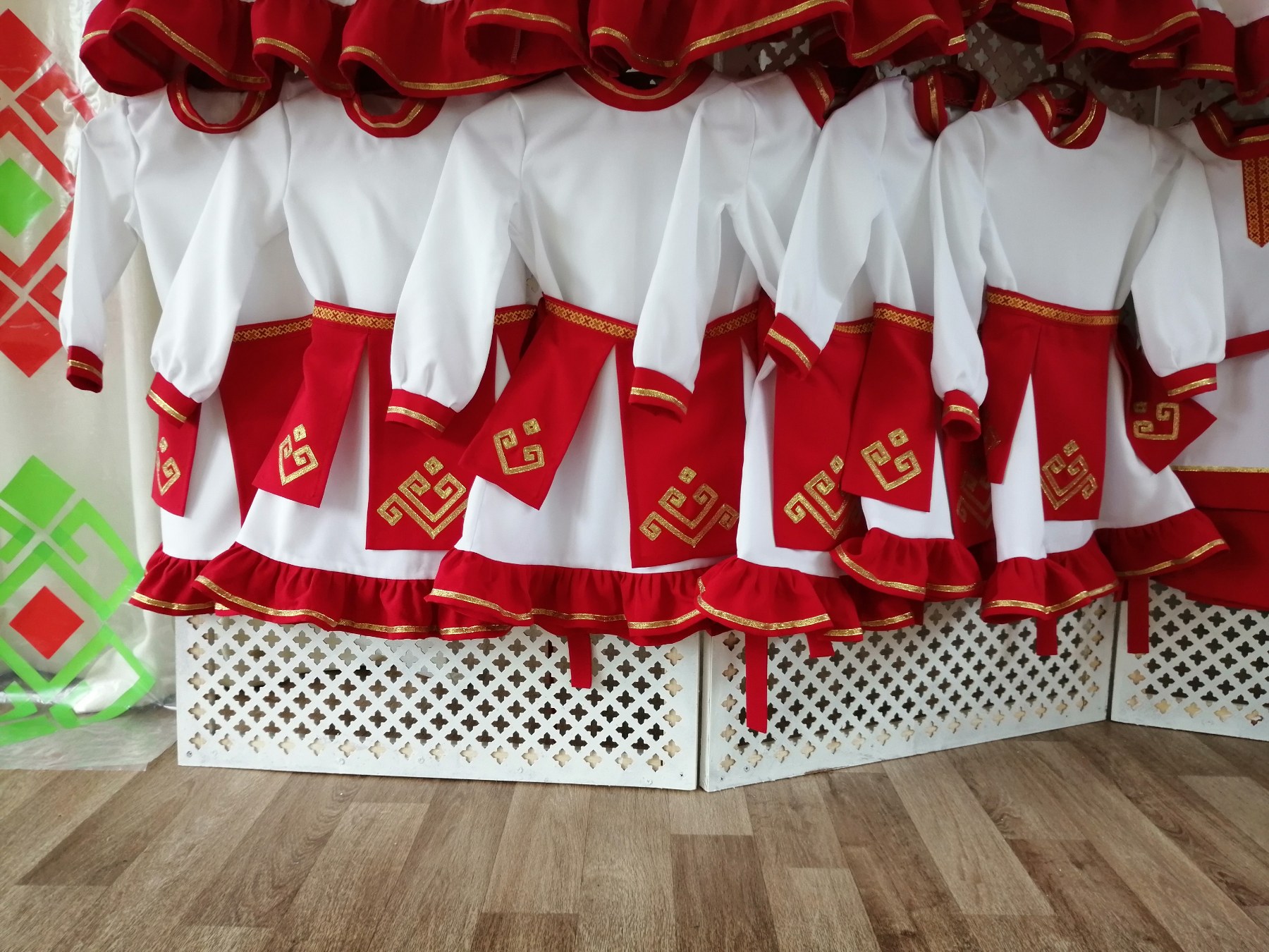 В рамках празднования 100 – летия Чувашской Автономной области и реализации проекта "Культурное наследие Чувашии заботливо и бережно храним" костюмерная ДОУ пополнилась яркими национальными костюмами для педагогов и воспитанников, которые представлены разнообразием головных уборов, платьев и костюмов, а также богатством вышитых ромбо- и зигзагообразных узоров, монетной и бисерной отделки, специального кроя.